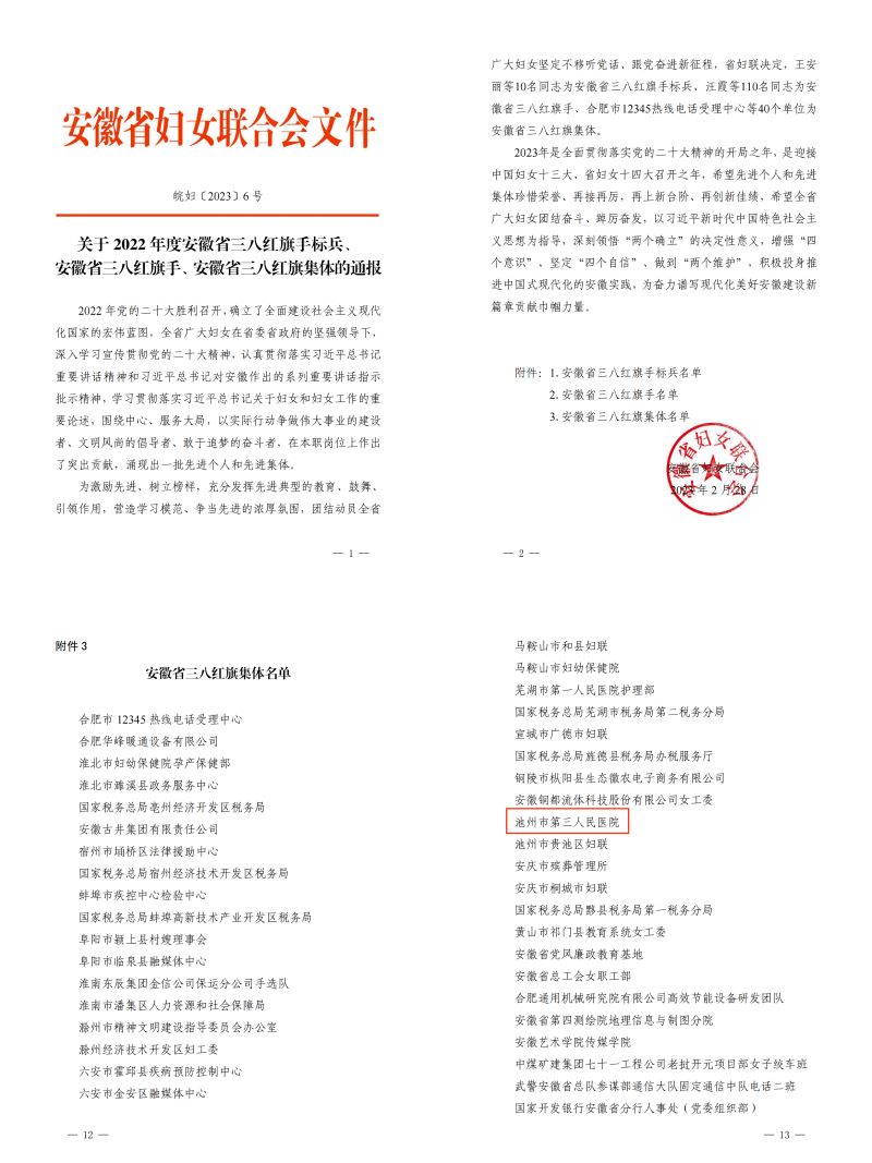 喜報(bào)!市三院榮獲“安徽省三八紅旗集體”稱號(hào)