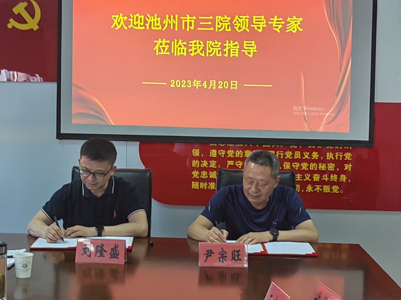 最后,考察組赴青陽縣人民醫(yī)院參加醫(yī)聯(lián)體合作協(xié)議簽約儀式,劉隆盛與青陽縣人民醫(yī)院院長尹宗旺代表雙方簽訂了醫(yī)聯(lián)體合作協(xié)議。