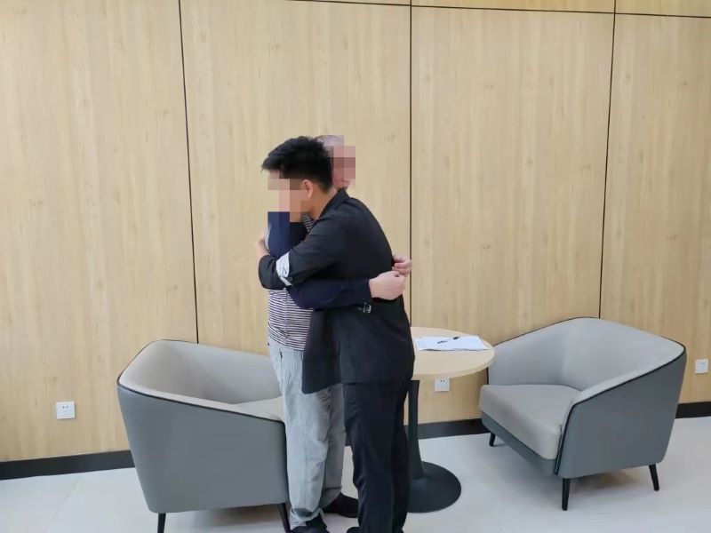 團(tuán)聚當(dāng)天,4年后再見(jiàn)到父親,吳某林先生對(duì)現(xiàn)場(chǎng)的醫(yī)護(hù)人員連聲道謝:“父親胖了很多,肯定是你們照顧得很細(xì)致,感謝你們。”看到兩人久別重逢,幸福相擁,我們的醫(yī)護(hù)人員也露出了欣慰的笑容。