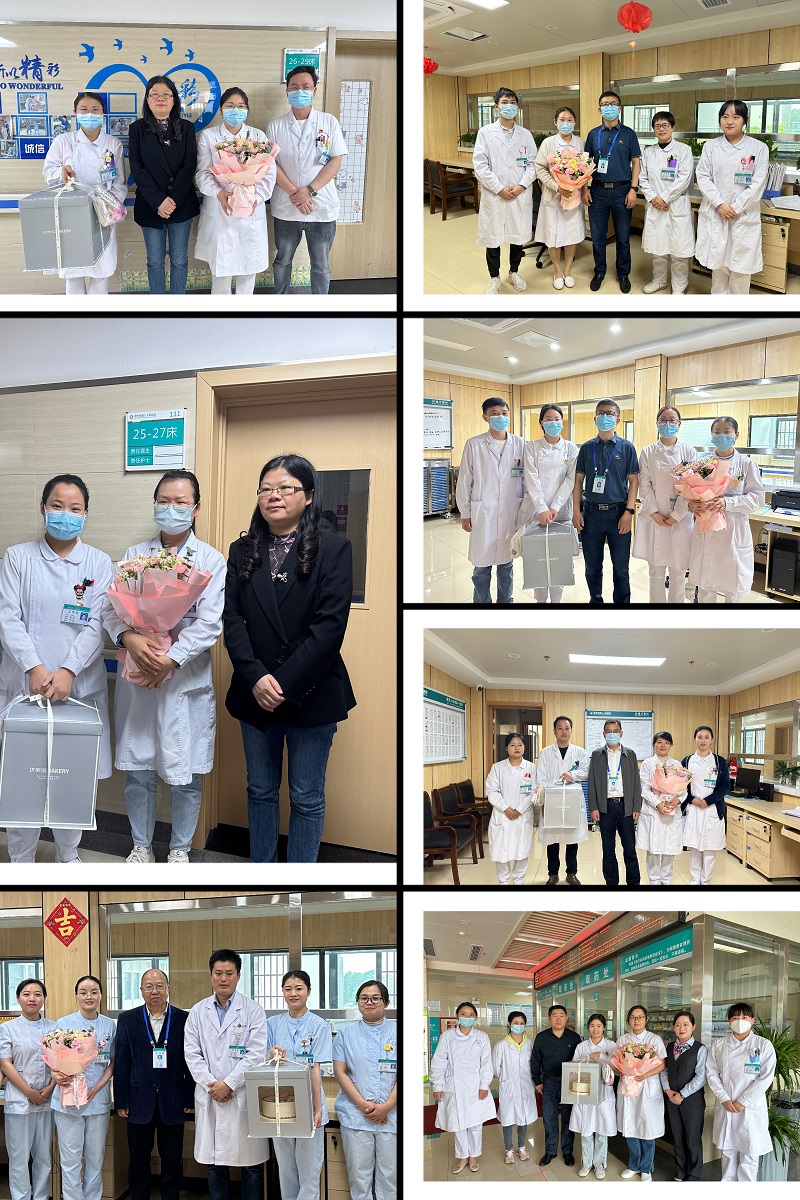 5月12日上午,在第112個國際護士節(jié)當(dāng)天,市三院領(lǐng)導(dǎo)班子分別帶隊深入住院病區(qū)、門診看望慰問奮斗在臨床一線的護理工作者,向辛勤工作在各個崗位的白衣天使們送上鮮花、蛋糕和節(jié)日的祝福。