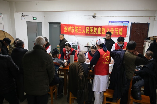 在新春佳節(jié)來(lái)臨之際,市第三人民醫(yī)院副院長(zhǎng)劉隆盛,黨委委員、人事科科長(zhǎng)王正馬率領(lǐng)醫(yī)護(hù)業(yè)務(wù)骨干一行 8人到涓橋敬老院開展宣教義診活動(dòng),為在院20多位老人送醫(yī)送藥送溫暖。