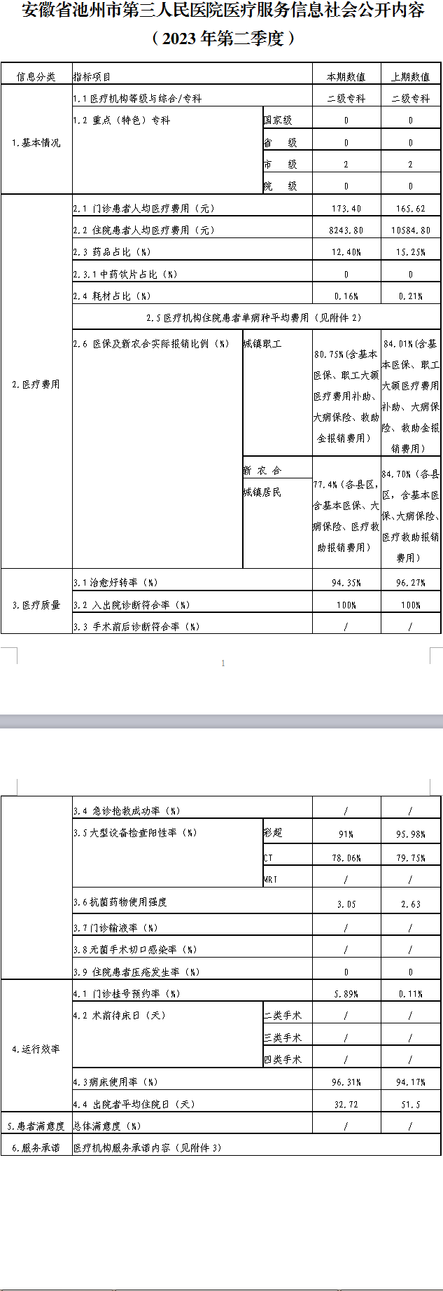 安徽省池州市第三人民醫(yī)院醫(yī)療服務(wù)信息社會(huì)公開內(nèi)容 (2023年第二季度)