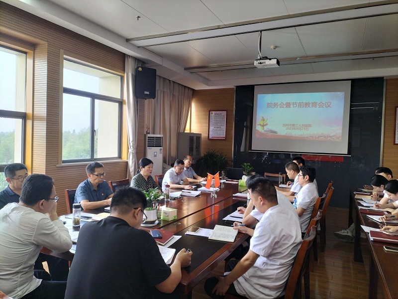 9月27日下午,市三院召開院務(wù)會暨中秋、國慶節(jié)前教育工作會議,黨委書記方東霞及在院領(lǐng)導(dǎo)班子成員、各科室負(fù)責(zé)人40余人參加。