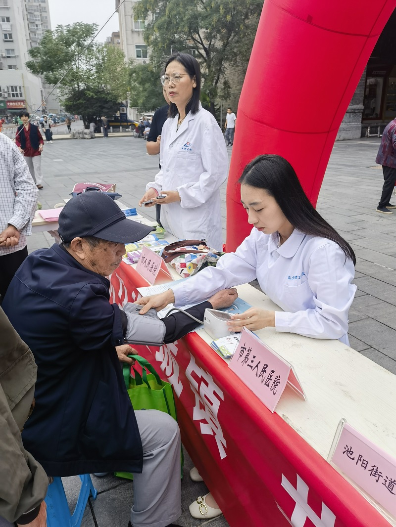 活動(dòng)現(xiàn)場(chǎng)搭建了講解咨詢臺(tái)、設(shè)置了宣傳展板、擺放了宣傳資料、懸掛了宣傳橫幅,吸引了廣大群眾的積極參與。市三院醫(yī)務(wù)人員發(fā)揮專業(yè)優(yōu)勢(shì),為群眾提供量血壓、測(cè)血糖等義診服務(wù),普及心理健康、秋冬季傳染病預(yù)防保健、健康飲食等知識(shí),發(fā)放健康宣傳資料200余份。醫(yī)務(wù)人員還向前來咨詢的群眾宣傳科普《安徽省愛國(guó)衛(wèi)生條例》和衛(wèi)生城鎮(zhèn)創(chuàng)建的重要意義,引導(dǎo)群眾遵守衛(wèi)生法律法規(guī),為爭(zhēng)創(chuàng)衛(wèi)生城鎮(zhèn)獻(xiàn)一份力。