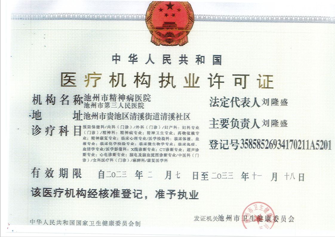 池州市第三人民醫(yī)院 版權(quán)所有 皖I(lǐng)CP16000805號-1 事業(yè)單位法人證書