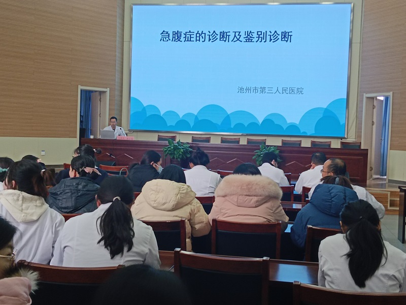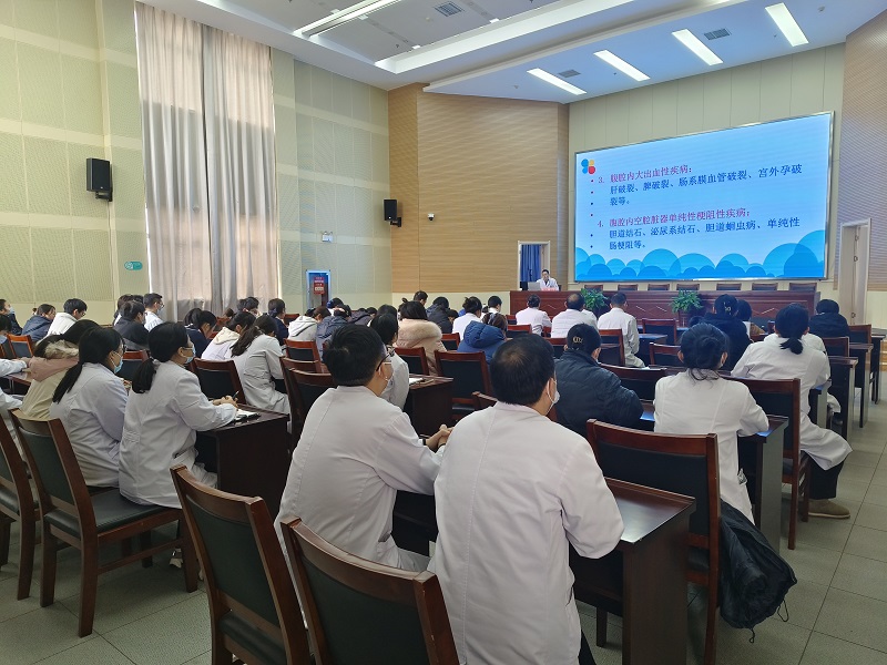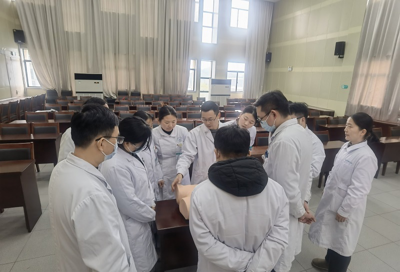 培訓(xùn)中,陳小勇主任用精彩生動的語言深入淺出地為大家闡述了急腹癥的診斷及鑒別診斷的要點、腹腔穿刺術(shù)操作術(shù)注意事項等急救知識與技能,同時采取理論與實踐相結(jié)合的方式,指導(dǎo)在場醫(yī)務(wù)人員進(jìn)行實操演練。