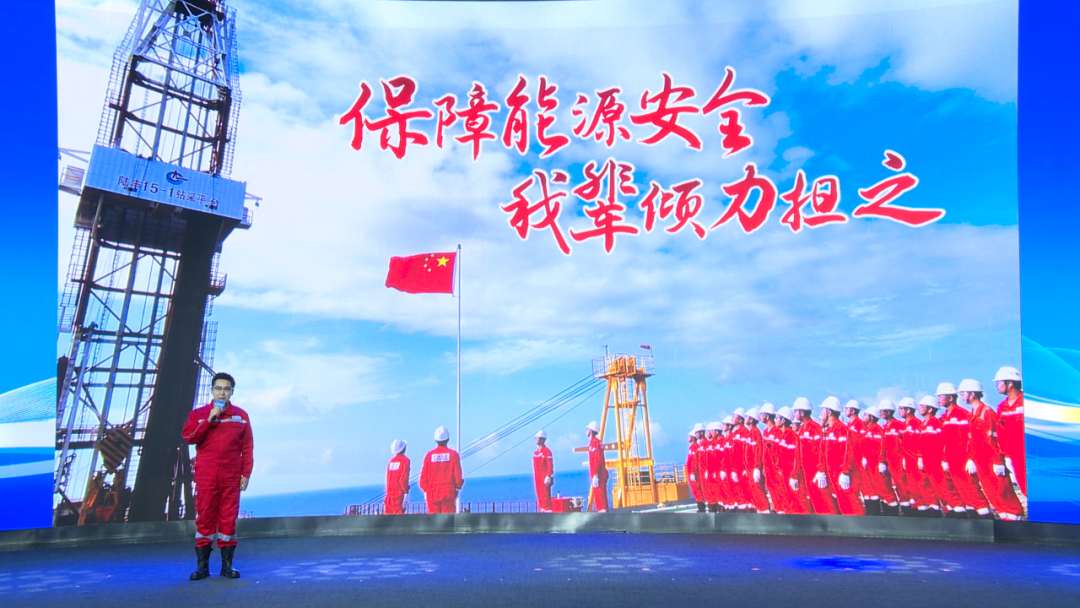 “一輛汽車沒了油,會怎么樣?一個(gè)城市沒了油會怎么樣?如果一個(gè)國家缺油了,又會怎么樣?”中海油田服務(wù)股份有限公司天津分公司群團(tuán)干事邵天琛以三個(gè)問題開場,講述了幾代石油人傳承石油精神、鐵人精神,逐夢深藍(lán)、接續(xù)奮斗,為祖國獻(xiàn)石油的故事,向全體青年發(fā)出了“以吾輩之臂膀,撐起時(shí)代之脊梁,以吾輩之擔(dān)當(dāng),復(fù)興盛世之中華”的號召。