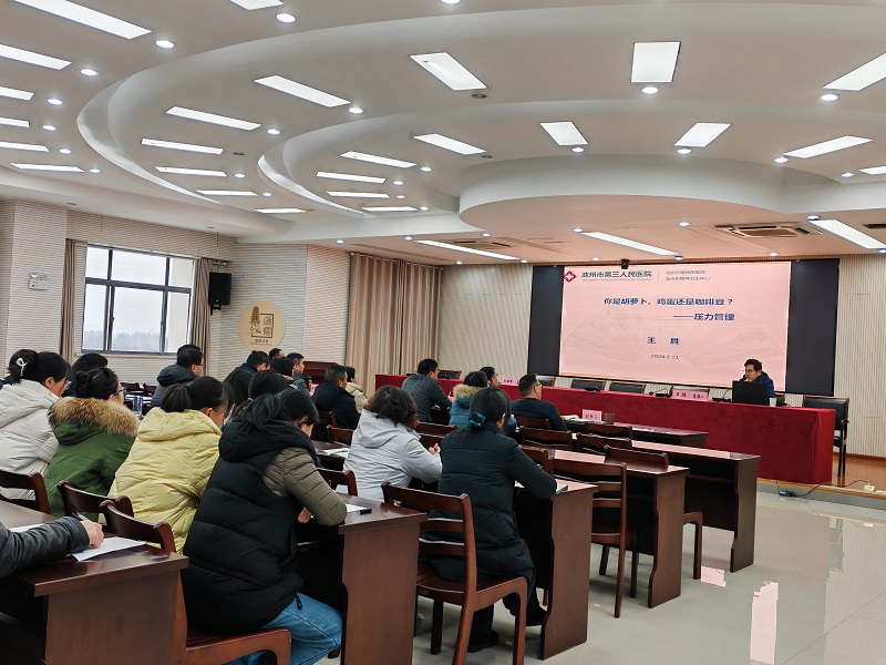 為進一步提升檢察干警心理健康素養(yǎng),引導干警正確排解工作壓力,增強檢察隊伍的凝聚力和戰(zhàn)斗力。2月21日下午,應貴池區(qū)檢察院邀請,市三院八病區(qū)主任、精神科主任醫(yī)師王勝為全院50余名干警開展心理健康知識講座。