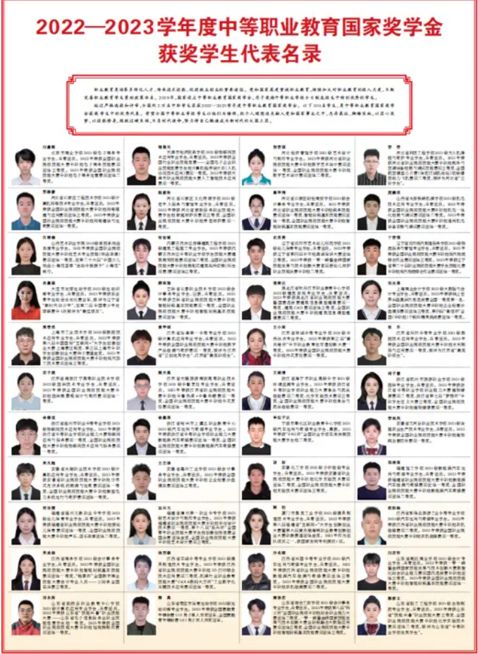 2022—2023學(xué)年度中等職業(yè)教育國家獎學(xué)金獲獎學(xué)生代表名錄(安徽)
