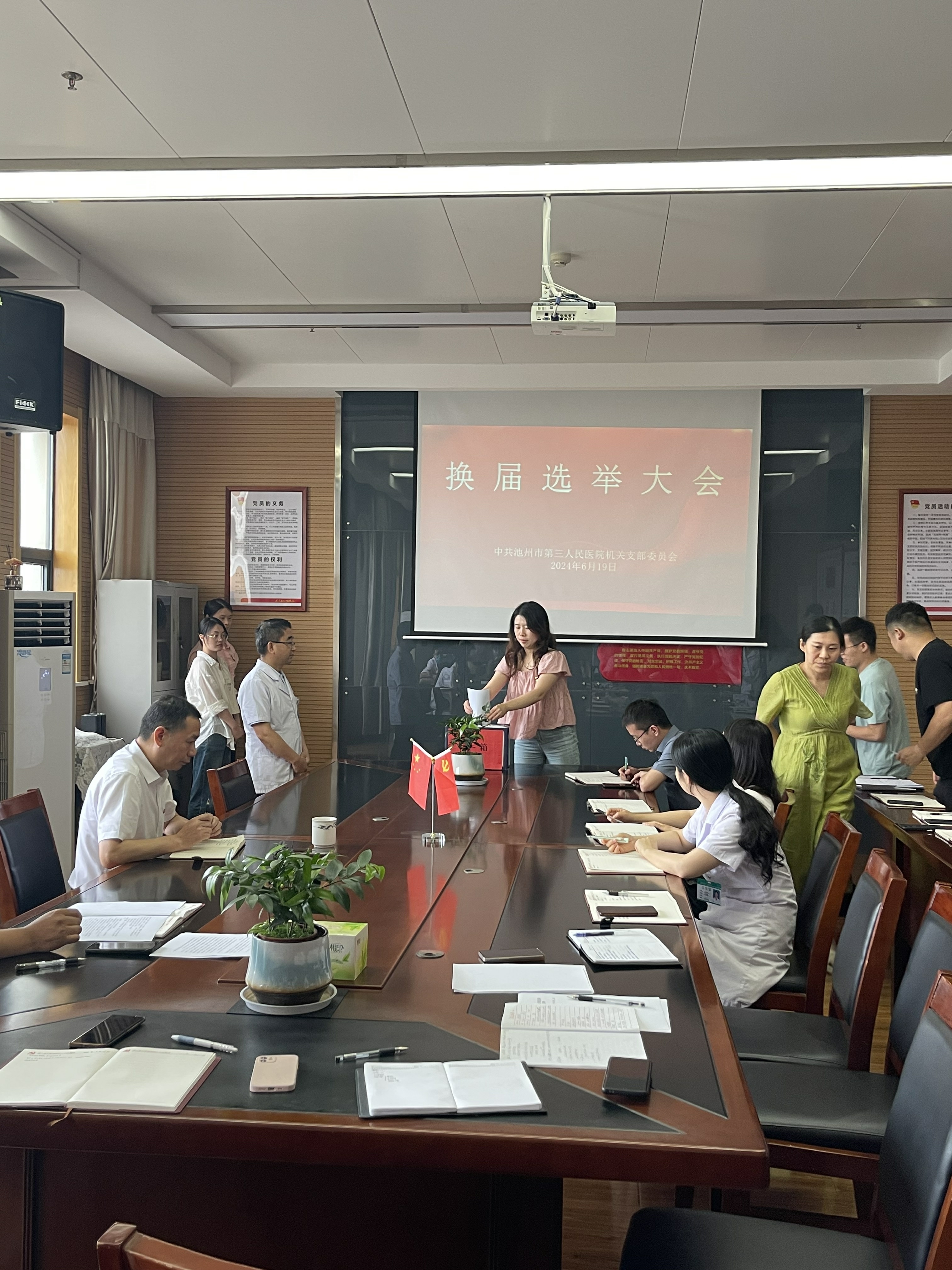 6月19日,中共池州市第三人民醫(yī)院機關(guān)支部委員會召開支部換屆選舉大會,大會由支部書記趙炳星主持,機關(guān)支部27名黨員參加。