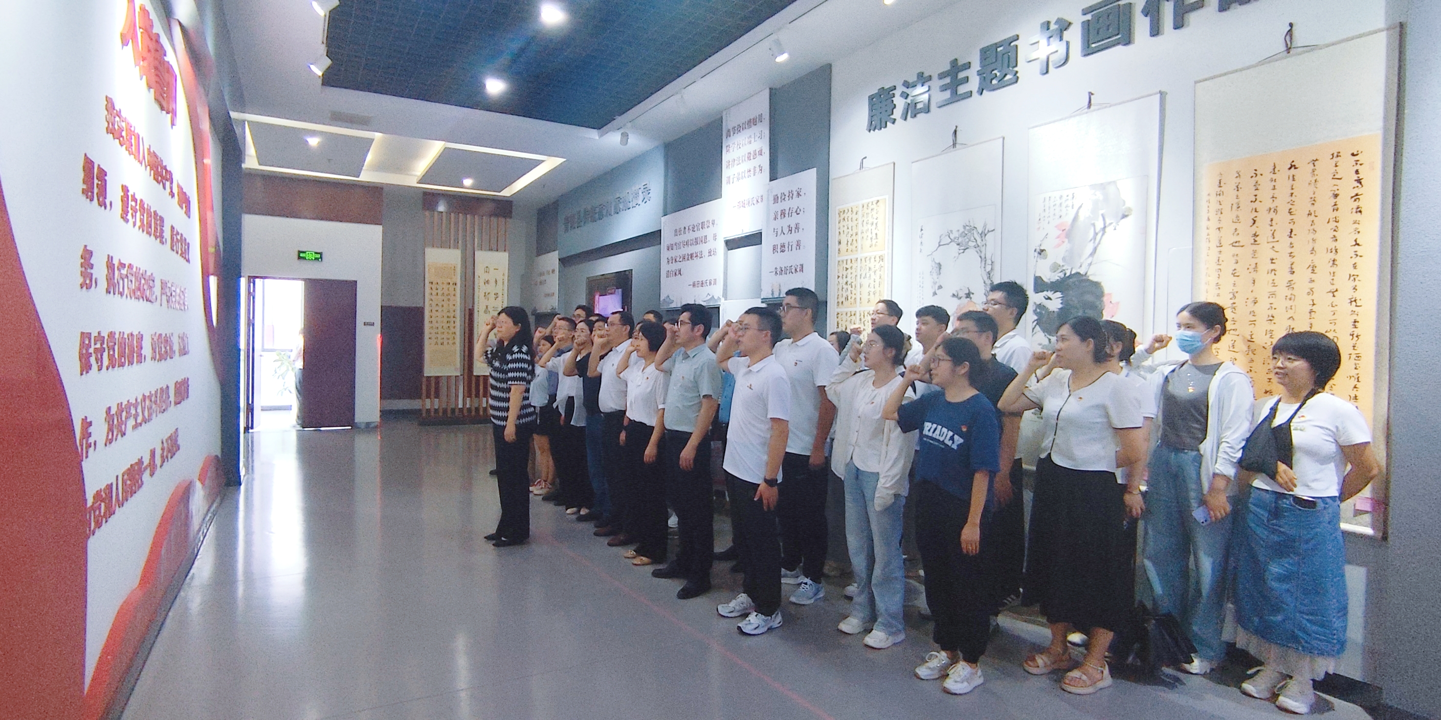 在講解員引導(dǎo)下,依次參觀“說(shuō)廉解字”、“廉政史話”、廉潔主題字畫等展廳。通過(guò)講解員的解說(shuō)、廉政教育視頻的觀看、反面案例的剖析,以“身邊人”“身邊事”給全體黨員上了一堂深刻的警示教育課,一件件真實(shí)鮮活的事例讓在場(chǎng)的每一位黨員干部心靈受到警醒和震撼。也讓他們深刻認(rèn)識(shí)到違紀(jì)違法給黨和國(guó)家事業(yè)造成的嚴(yán)重危害,給自身、社會(huì)和家庭帶來(lái)的沉重代價(jià)。