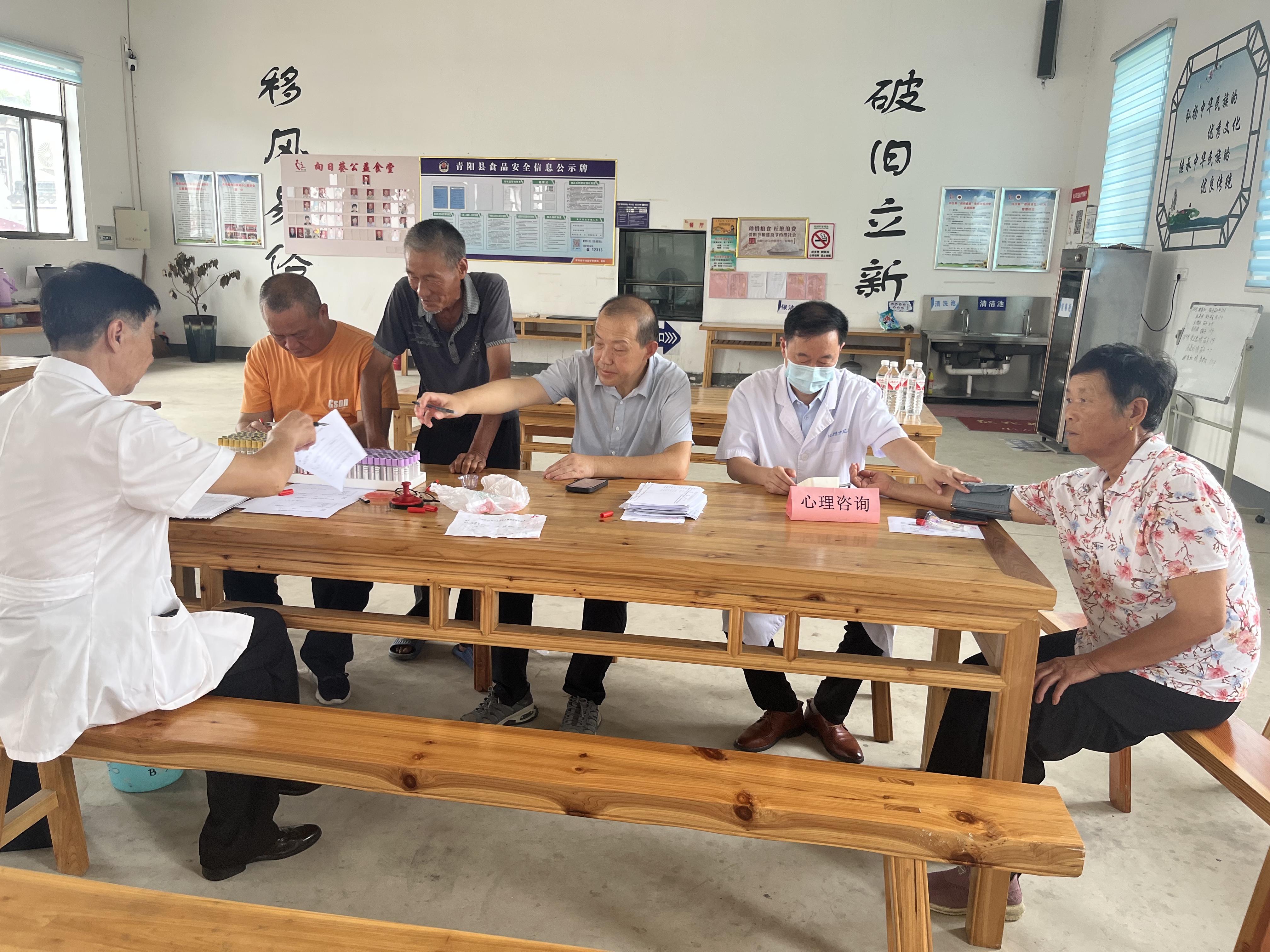 7月10日上午,市三院青年衛(wèi)生志愿者一行3人,在廟前鎮(zhèn)中心衛(wèi)生院醫(yī)務(wù)人員陪同下,為廟前鎮(zhèn)星星村近80名65歲以上老年人免費(fèi)開展健康體檢。
