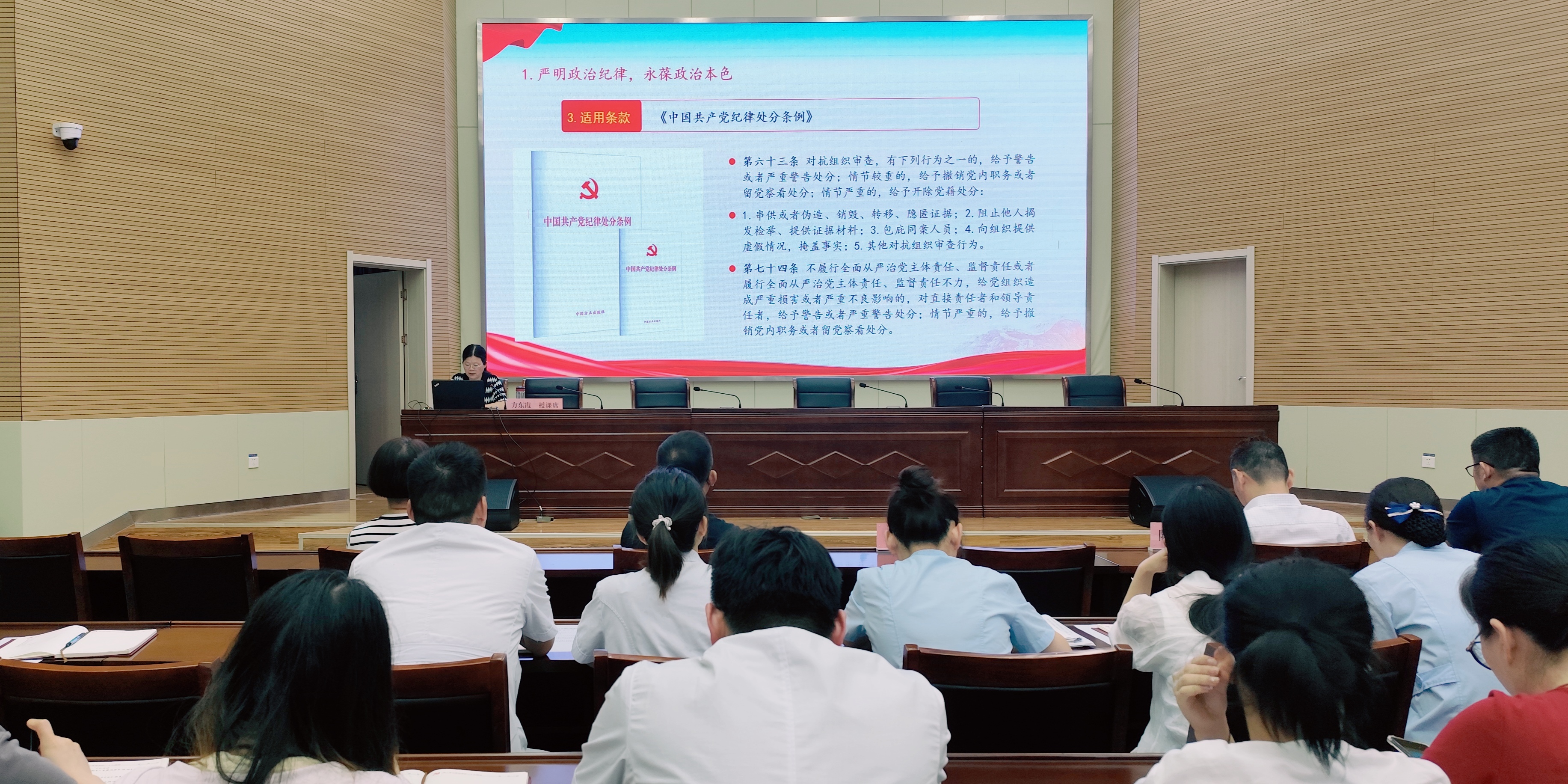 為扎實(shí)推進(jìn)黨紀(jì)學(xué)習(xí)教育常態(tài)長(zhǎng)效、見(jiàn)行見(jiàn)效,真正使黨紀(jì)學(xué)習(xí)教育的過(guò)程變成增強(qiáng)黨性、嚴(yán)守紀(jì)律、砥礪作風(fēng)的過(guò)程,把遵規(guī)守紀(jì)內(nèi)化于心、化為習(xí)慣,7月12日下午,市三院召開(kāi)了全院警示教育大會(huì)暨紀(jì)律黨課報(bào)告會(huì)。院黨委書(shū)記方東霞主持會(huì)議并作了紀(jì)律黨課報(bào)告,全體黨員、入黨積極分子和中層及以上干部參加了會(huì)議。