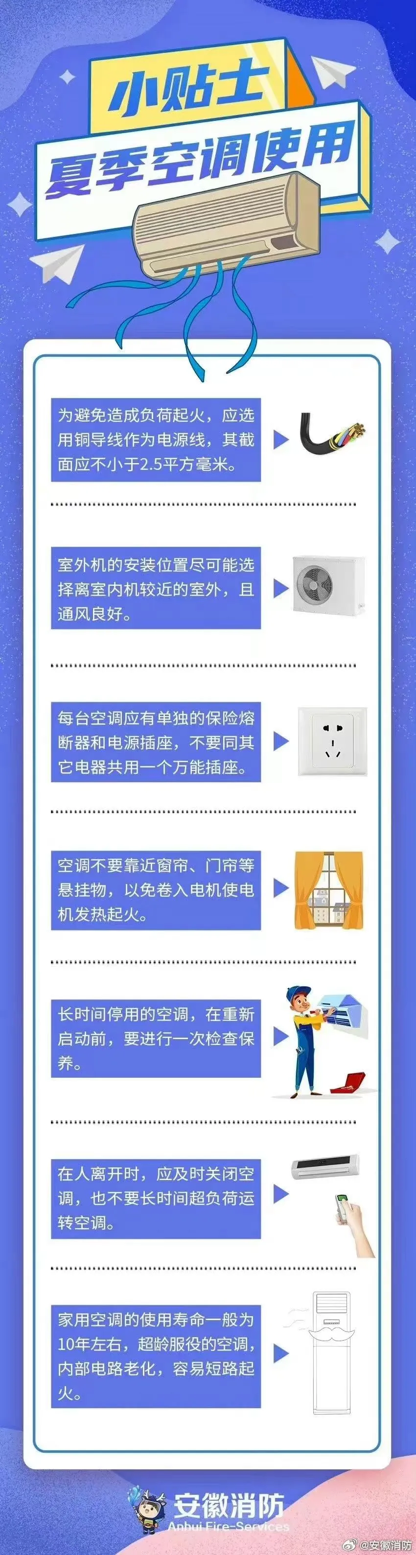 夏季酷熱,很多家庭的空調直接開啟“24小時運轉模式”,空調機器、電氣設備線路超負荷運轉,容易導致出現(xiàn)短路等問題。