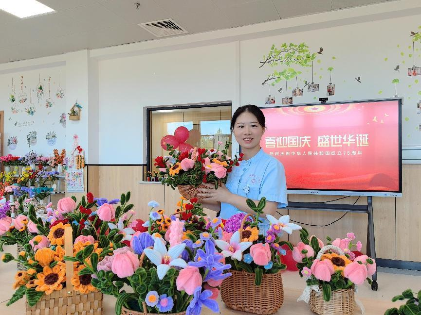 火紅的玫瑰、金燦燦的向日葵、潔白的百合……一束束鮮艷的扭扭花,一個(gè)個(gè)精致的花籃,表達(dá)了大家對(duì)祖國(guó)母親的深情祝福以及對(duì)未來美好生活的向往。我愛你,中國(guó)!九病區(qū)醫(yī)護(hù)人員紛紛表示,要立足崗位、勤奮工作,為實(shí)現(xiàn)健康中國(guó)戰(zhàn)略目標(biāo)、全面建設(shè)社會(huì)主義現(xiàn)代化國(guó)家貢獻(xiàn)力量和智慧。
