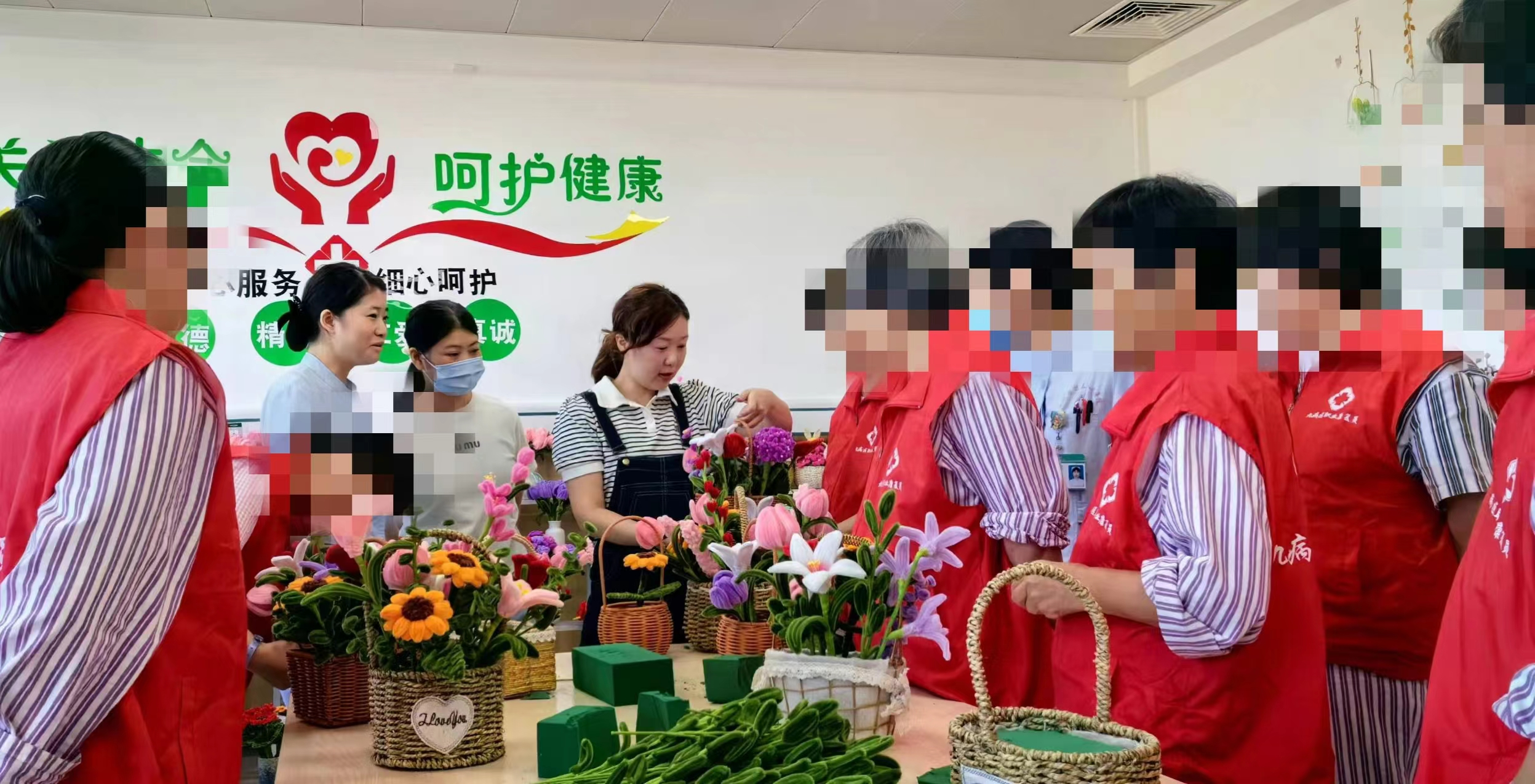 本次活動(dòng)特邀專業(yè)花藝師,為醫(yī)務(wù)人員和住院患者帶來一場(chǎng)別開生面的花藝課。從動(dòng)作要領(lǐng)到插花技巧,從顏色搭配到包裝創(chuàng)意……花藝師講得仔細(xì),大家聽得專注,活動(dòng)現(xiàn)場(chǎng)其樂融融,氣氛熱烈。通過現(xiàn)場(chǎng)學(xué)藝,廣大醫(yī)患開闊了眼界,增長(zhǎng)了見識(shí),并在溝通交流中,深切體會(huì)了插花藝術(shù)的樂趣和傳統(tǒng)文化的魅力。