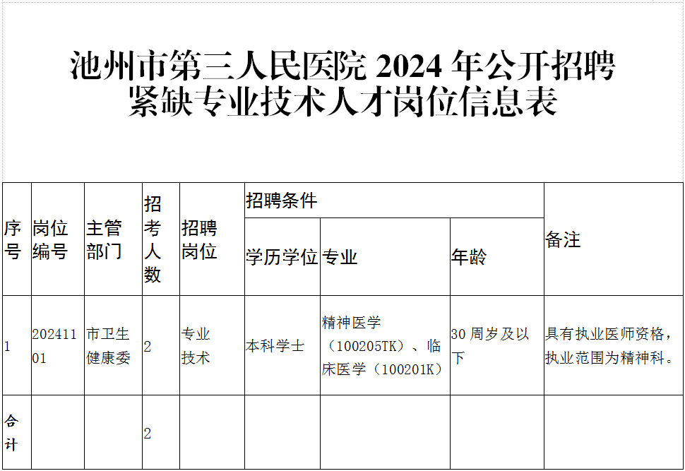 附件:池州市第三人民醫(yī)院2024年公開招聘緊缺專業(yè)技術(shù)人才崗位信息表