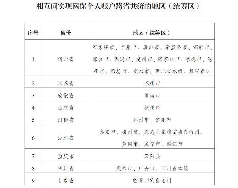 醫(yī)保個人賬戶全國跨省共濟啟動,9省份的31個地區(qū)(統(tǒng)籌區(qū))試點進行跨省共濟