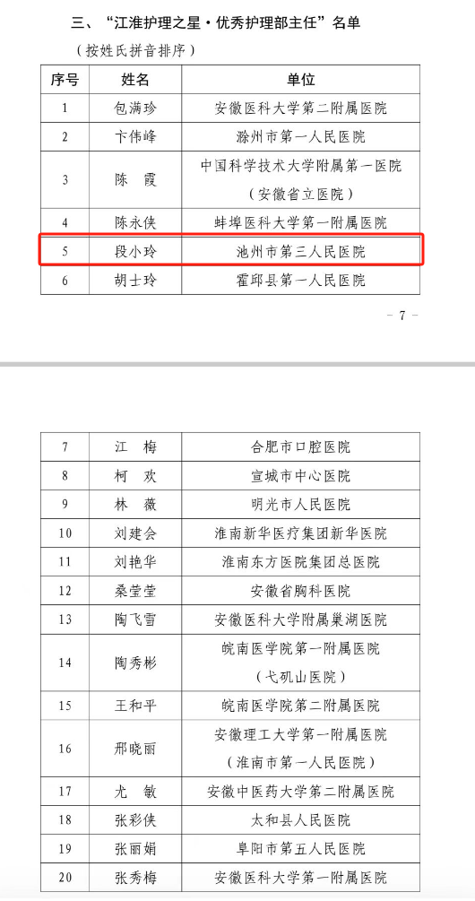 日前,安徽省健康服務(wù)業(yè)協(xié)會(huì)下發(fā)通知,市三院王勝同志榮獲2024年安徽省健康服務(wù)業(yè)“十佳健康衛(wèi)士”稱號(hào),段小玲同志榮獲第四屆安徽省“江淮護(hù)理之星·優(yōu)秀護(hù)理部主任”稱號(hào)。