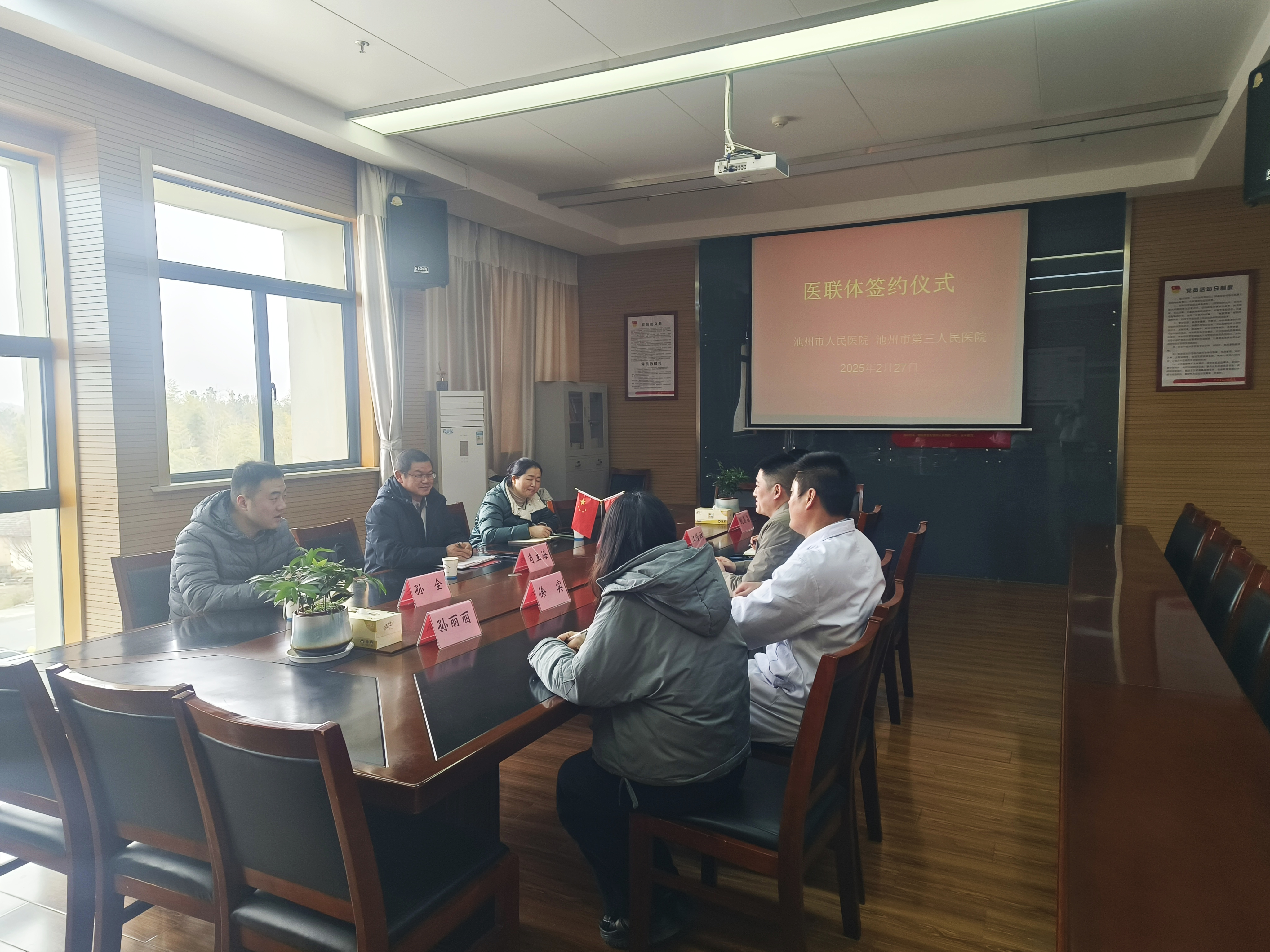 2月27日上午,池州市第三人民醫(yī)院和池州市人民醫(yī)院醫(yī)聯(lián)體簽約暨精神科聯(lián)合病房揭牌儀式在我院成功舉行。市人民醫(yī)院黨委委員肖主海一行3人、市三院副院長張曉明及相關(guān)科室負(fù)責(zé)人出席儀式并開展座談交流。