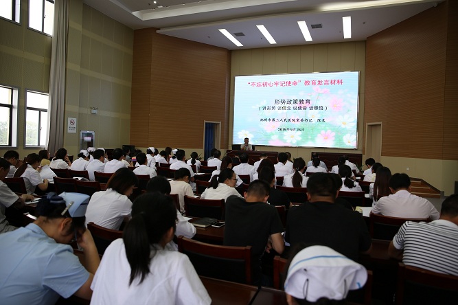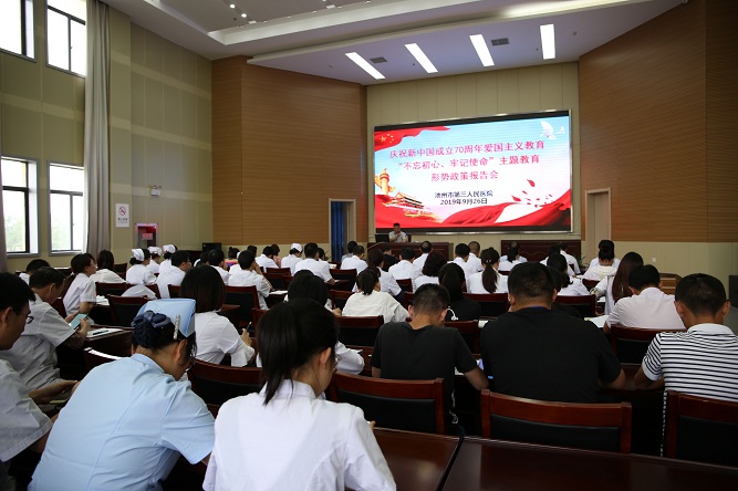 市三院黨委組織開展慶祝新中國成立70周年愛國主義教育暨“不忘初心、牢記使命”主題教育形勢政策報告會