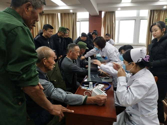 義診活動中,醫(yī)護(hù)人員用“愛心、耐心、細(xì)心、責(zé)任心”為這些有功之臣們檢查身體,按照每位老軍人身體狀況,對就診老軍人逐個進(jìn)行病情診斷,為他們提供血糖、血壓等免費項目檢查,并根據(jù)老軍人實際病情發(fā)放免費治療藥品。