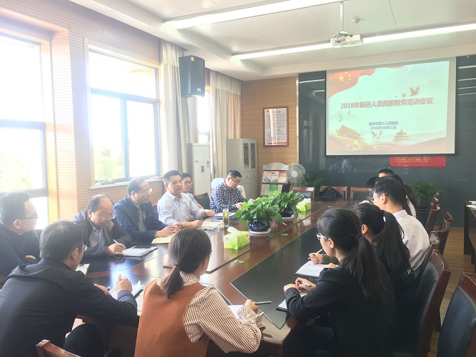 為使新入院的職工能盡快適應(yīng)醫(yī)院的工作環(huán)境,提高職業(yè)道德素養(yǎng),幫助他們了解醫(yī)院、熟悉崗位,明確自己的義務(wù),使其盡快適應(yīng)新的工作崗位需要,恪守醫(yī)務(wù)人員的行為準則。10月11日下午,新進人員崗前教育培訓會議在四樓會議室召開。參加會議的有全體班子成員及10名新職工。會議由黨委書記、院長唐達亮主持。