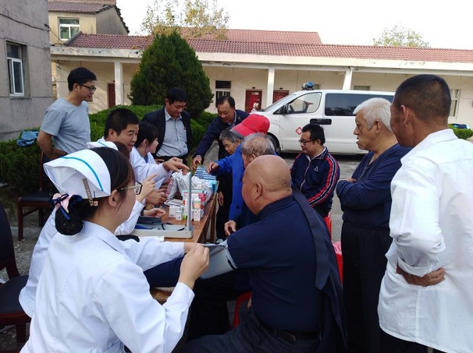 醫(yī)療小分隊耐心地給老人測血壓、聽心率、測血糖,為老人進行耐心細致的檢查,詢問身體狀況,認真向老人們講解疾病預防知識,指導老人注意健康的生活方式。對需要服藥的老人免費派發(fā)了常用的藥品,并為長期服藥的老人調(diào)整治療方案。