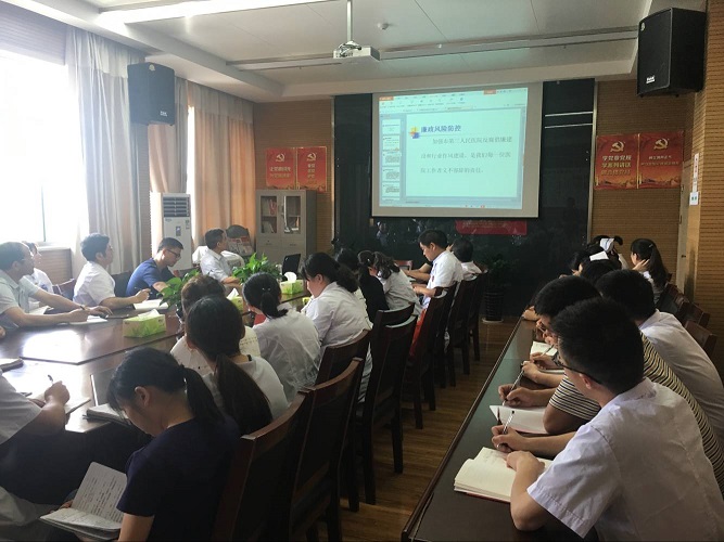 隨后,唐達(dá)亮結(jié)合警示教育片和醫(yī)院工作實(shí)際,從廉政風(fēng)險(xiǎn)防控的目的、防控重點(diǎn)崗位和防控方法三個(gè)方面進(jìn)行闡述醫(yī)院風(fēng)險(xiǎn)防控。唐達(dá)亮強(qiáng)調(diào)要把醫(yī)院廉潔風(fēng)險(xiǎn)防控作為落實(shí)黨風(fēng)廉政建設(shè)責(zé)任制和糾風(fēng)工作責(zé)任制、加強(qiáng)懲治和預(yù)防腐敗體系建設(shè)的一項(xiàng)重要任務(wù)。同時(shí)要求全體醫(yī)務(wù)人員時(shí)刻保持政治上的清醒,在做好業(yè)務(wù)工作的同時(shí),不斷加強(qiáng)自身修養(yǎng)、改進(jìn)思想作風(fēng),努力踐行醫(yī)療衛(wèi)生行風(fēng)建設(shè)“九不準(zhǔn)”,筑牢拒腐防變的思想道德防線。